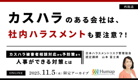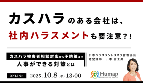 カスハラのある会社は、社内ハラスメントも要注意?!人事ができる対策とは~10/8(水)