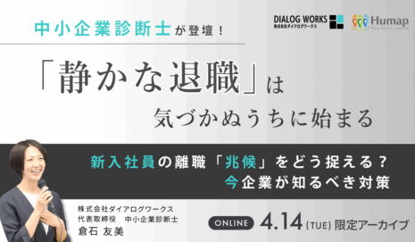 【動画セミナー】「静かな退職」は、気づかぬうちに始まる~新入社員の離職「兆候」をどう捉える?いま企業が知るべき対策~4/14(火)
