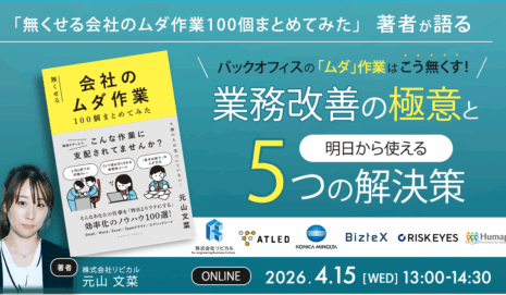バックオフィスの「ムダ作業」はこう無くす!~『無くせる会社のムダ作業100個まとめてみた』著者が語る業務改善の極意と、明日から使える5つの解決策~4/15(水)