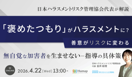 「褒めたつもりがハラスメントに?」善意がリスクに変わる~無自覚な加害者を生ませない指導の具体策~4/22(水)
