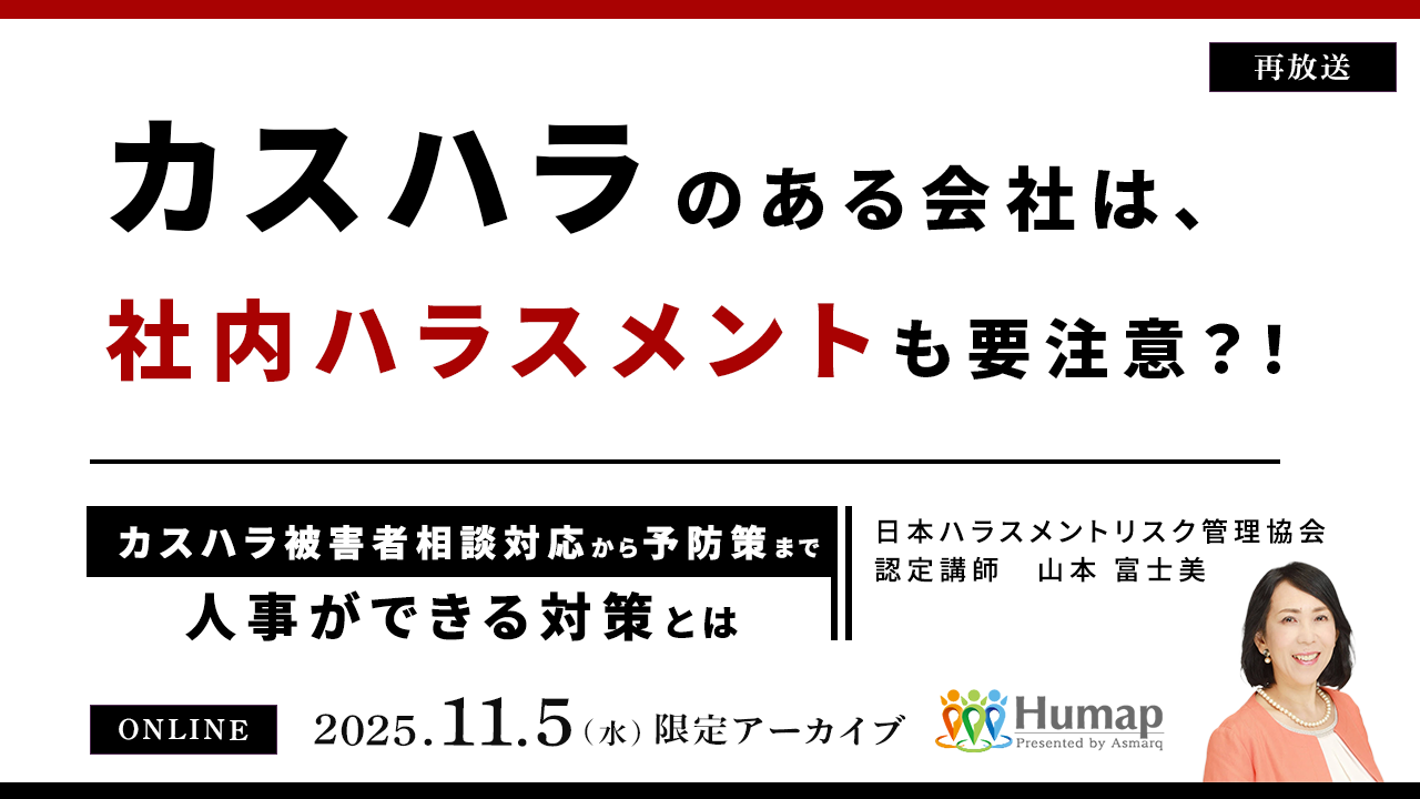 本セミナーでは、カスハラを入り口に、その背後に潜む社内ハラスメントの課題を掘り下げます。