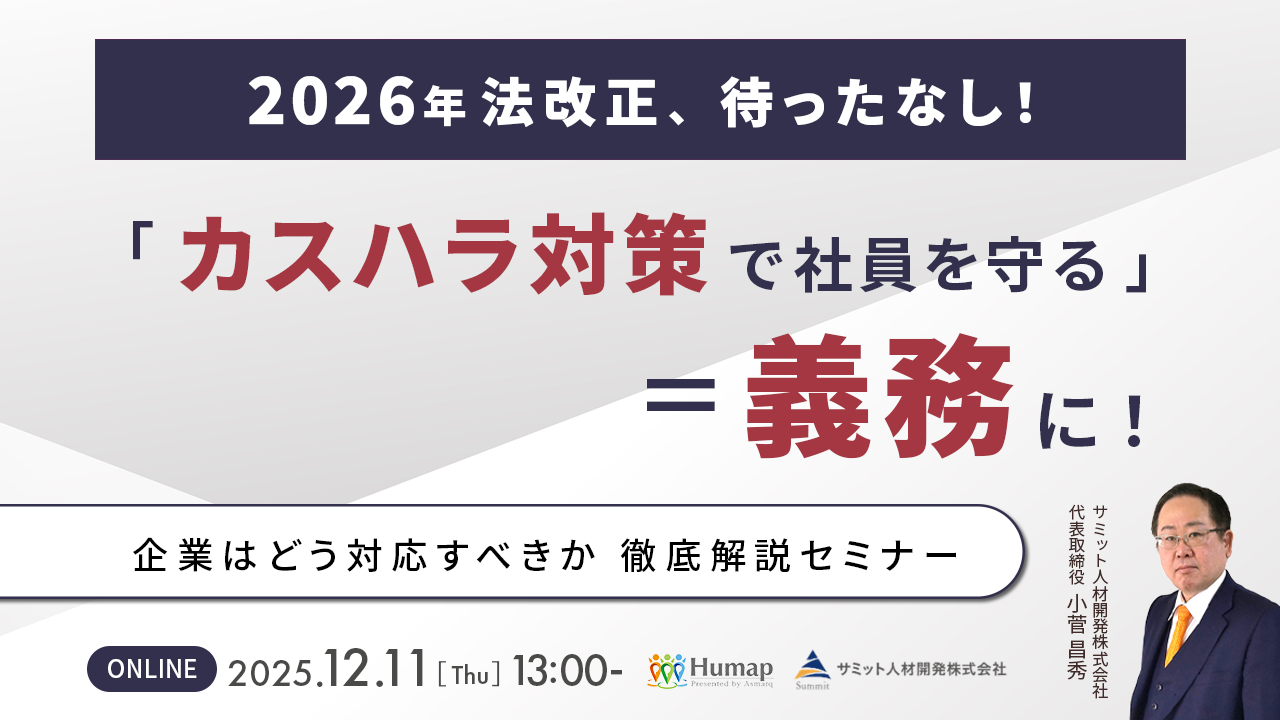 2026年法改正、待ったなし「カスハラ対策で社員を守る」=義務に!企業はどう対応すべきか~12/11(木)